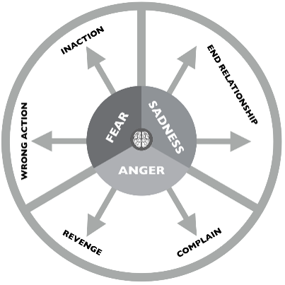 Deze drie emoties kunnen de basis vormen voor gedrag dat ongewenst is in het kader van de klantrelatie en het imago. Zoals klagen, naar de concurrent stappen of 'bevriezen'.