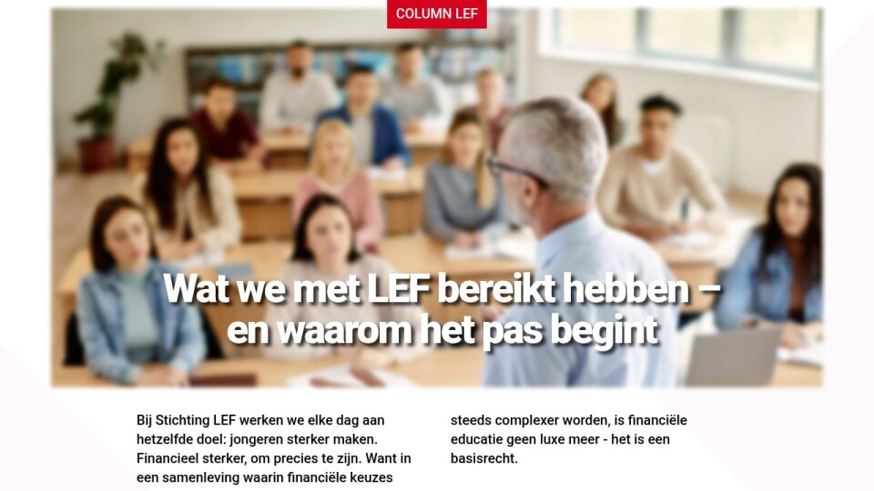 Bij Stichting LEF werken we elke dag aan hetzelfde doel: jongeren sterker maken. Financieel sterker, om precies te zijn. Want in een samenleving waarin financiële keuzes steeds complexer worden, is financiële educatie geen luxe meer - het is een basisrecht.
