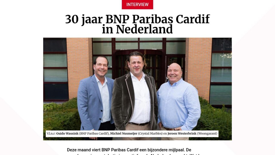 Deze maand viert BNP Paribas Cardif een bijzondere mijlpaal. De verzekeraar is exact dertig jaar actief op de Nederlandse markt. Wat begon als een relatief kleine nieuwkomer, groeide in drie decennia uit tot een specialist die zich moeiteloos weet aan te passen aan een steeds veranderende hypotheek- en woonmarkt.