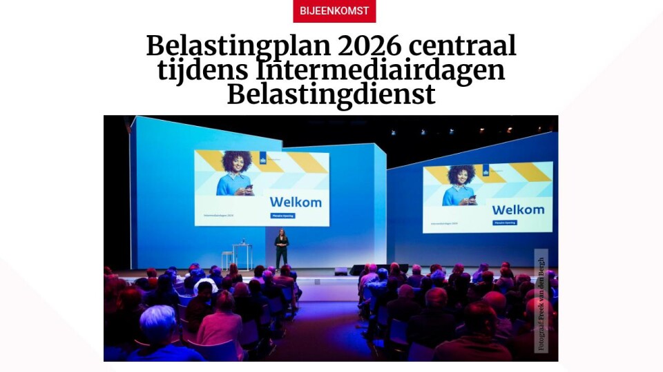 Belastingplan 2026 centraal tijdens Intermediairdagen Belastingdienst