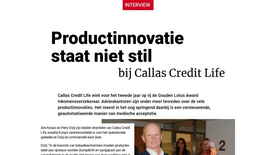Volgend jaar zal Callas Credit Life nog dieper en verder integreren en zal er vanuit één kantoor worden gewerkt. Dizij met een knipoog: “We hebben dan ook voldoende ruimte vrij voor nog méér awards.”